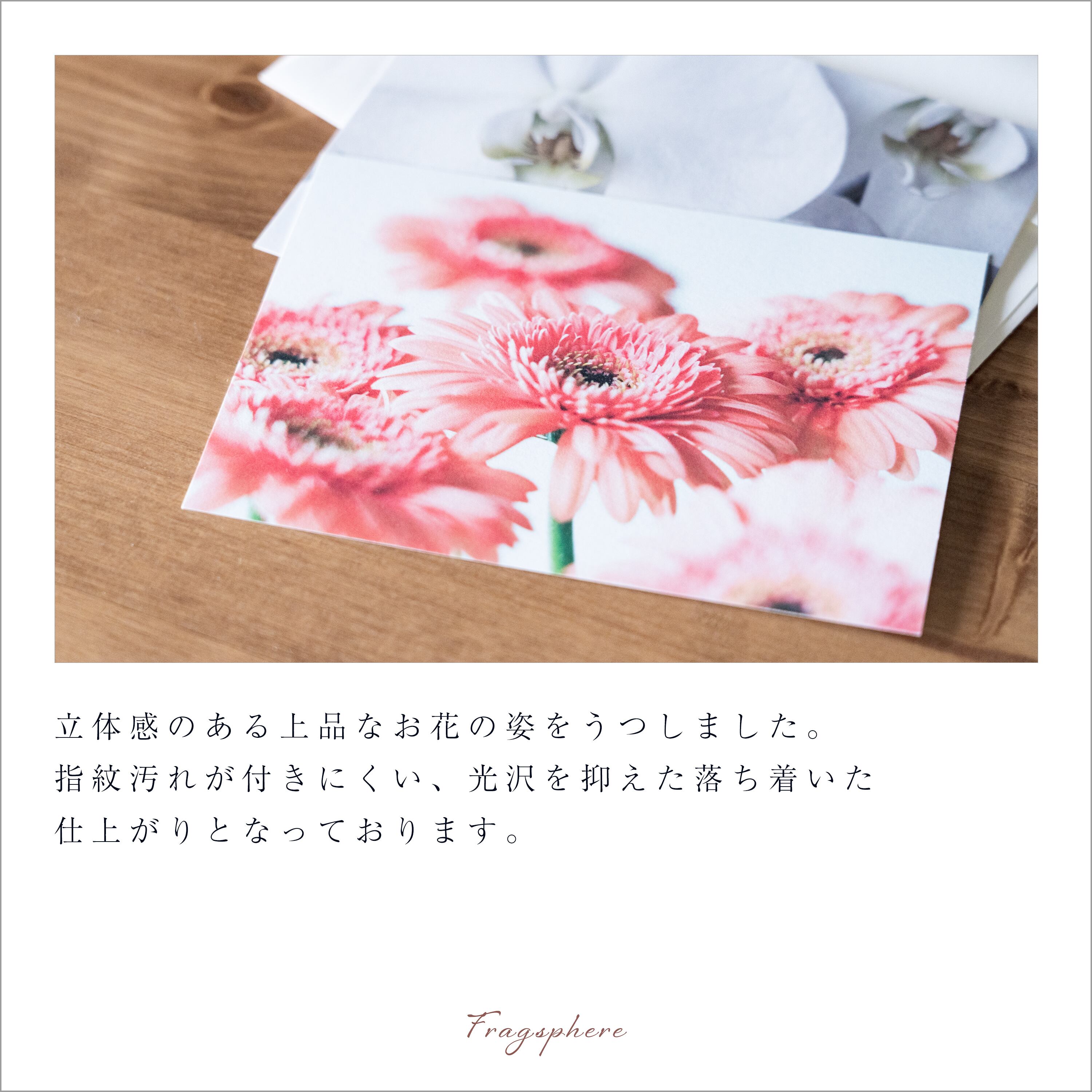 繊細な風合いを持つ高級紙に上品なお花の姿をうつしました。
